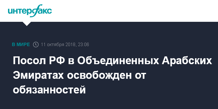 Посол РФ в Объединенных Арабских Эмиратах освобожден от обязанностей