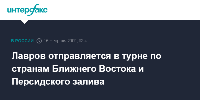 Москва. 15 февраля. ИНТЕРФАКС - Министр иностранных дел РФ Сергей Лавров в воскресенье отправится в поездку по странам Ближнего Востока и Персидского залива.