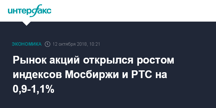 Рынок акций открылся ростом индексов Мосбиржи и РТС на 0,9-1,1%
