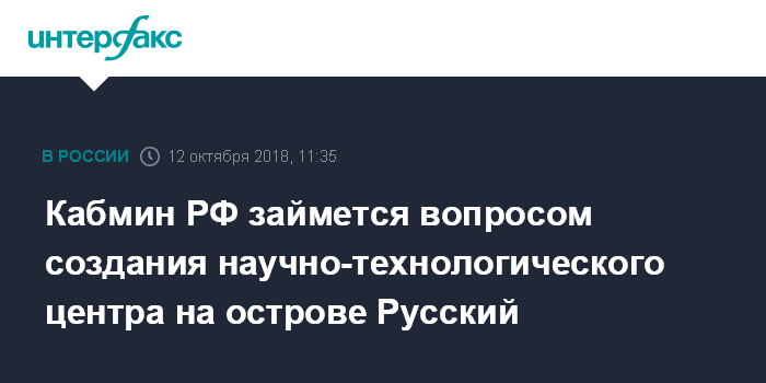Согласно поручению, опубликованному на сайте Кремля, специальный правовой статус острова Русский должен обеспечить условия для создания там крупного научно-технологического центра. "Проработать вопрос о придании острову Русский специального правового статуса с целью формирования комфортной среды для создания и реализации инновационных проектов, тестирования и пилотного внедрения передовых разработок, в том числе в сферах робототехники, медицины и биотехнологии, беспилотного и морского транспорта, экологии и других", - говорится в перечне поручений.