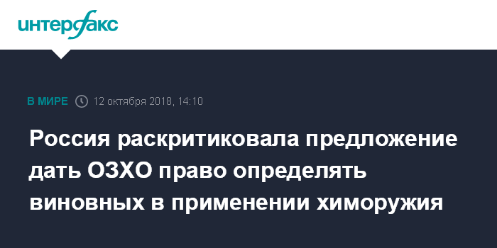 Россия раскритиковала предложение дать ОЗХО право определять виновных в применении химоружия