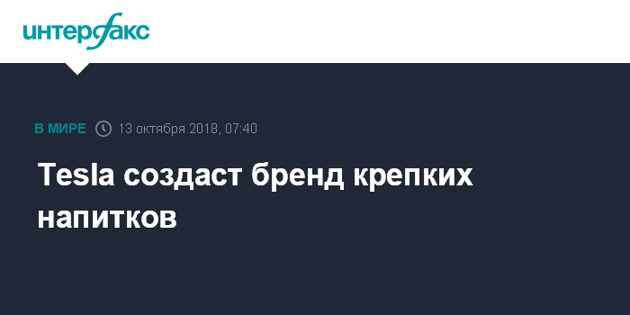 Москва. 13 октября. INTERFAX.RU - Компания Tesla, производитель одноименных электромобилей, подала заявку на регистрацию бренда Teslaquila для выпуска текилы, сообщил телеканал CNBC.