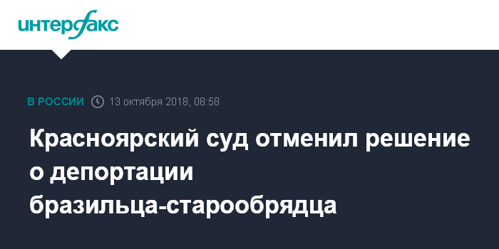 Красноярский суд отменил решение о депортации бразильца-старообрядца