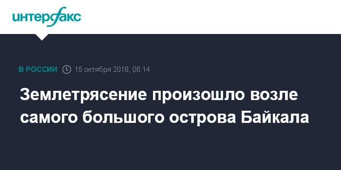 Москва. 15 октября. INTERFAX.RU - Подземный толчок был зафиксирован в минувшие выходные в акватории озера Байкал вблизи острова Ольхон в Иркутской области, сообщает в понедельник сайт Байкальского филиала Единой геофизической службы РАН.