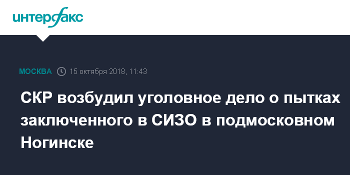 СКР возбудил уголовное дело о пытках заключенного в СИЗО в подмосковном Ногинске