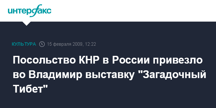 Владимир. 15 февраля. INTERFAX.RU - В палатах Владимиро-Суздальского музея-заповедника открылась выставка "Загадочный Тибет", предоставленная посольством Китайской Народной Республики в России.