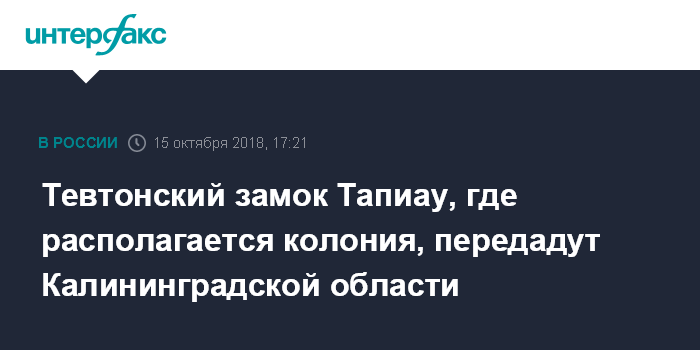 Тевтонский замок Тапиау, где располагается колония, передадут Калининградской области