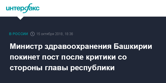 Министр здравоохранения Башкирии покинет пост после критики со стороны главы республики