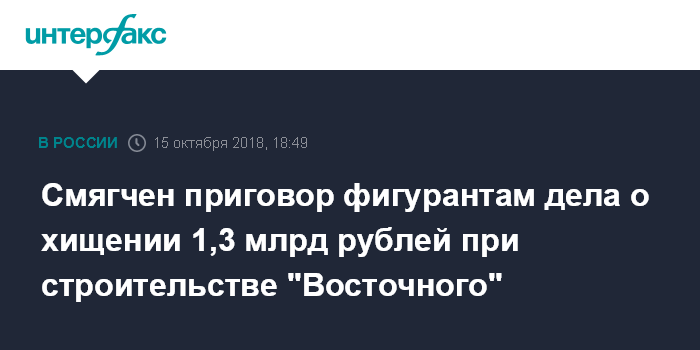 Смягчен приговор фигурантам дела о хищении 1,3 млрд рублей при строительстве "Восточного"