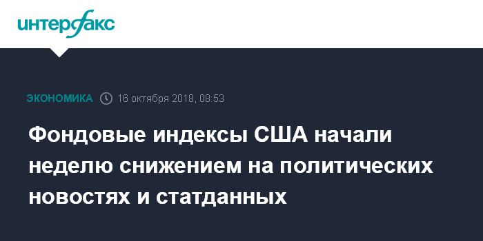 Фондовые индексы США начали неделю снижением на политических новостях и статданных