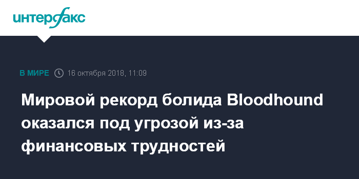 Москва. 16 октября. INTERFAX.RU - Проект, в рамках которого планировалось установить новый рекорд наземной скорости, столкнулся с финансовыми проблемами, сообщает "Би-би-си".