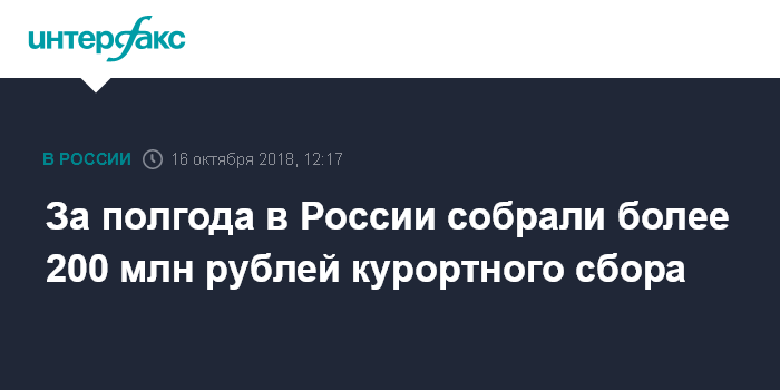 За полгода в России собрали более 200 млн рублей курортного сбора