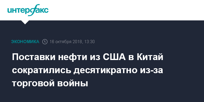 Москва. 16 октября. INTERFAX.RU - Экспорт нефти из США в Китай стал еще одной жертвой торговой войны между двумя странами: в первом полугодии КНР была крупнейшим покупателем американской нефти, но в третьем квартале поставки резко сократились, пишет The Wall Street Journal.