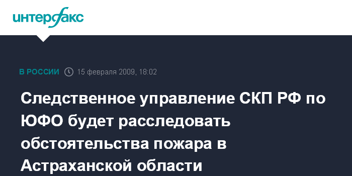 Следственное управление СКП РФ по ЮФО будет расследовать обстоятельства пожара в Астраханской области