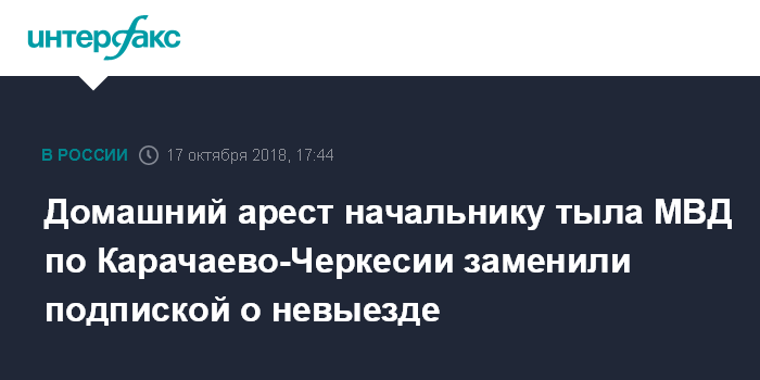 Домашний арест начальнику тыла МВД по Карачаево-Черкесии заменили подпиской о невыезде
