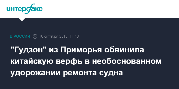 "Гудзон" из Приморья обвинила китайскую верфь в необоснованном удорожании ремонта судна