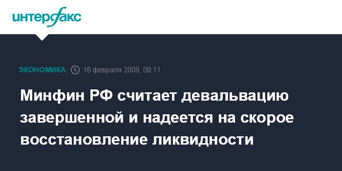 Минфин РФ считает девальвацию завершенной и надеется на скорое восстановление ликвидности