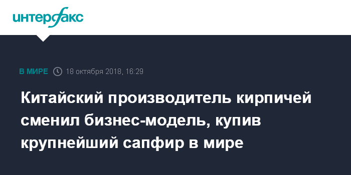 Китайский производитель кирпичей сменил бизнес-модель, купив крупнейший сапфир в мире