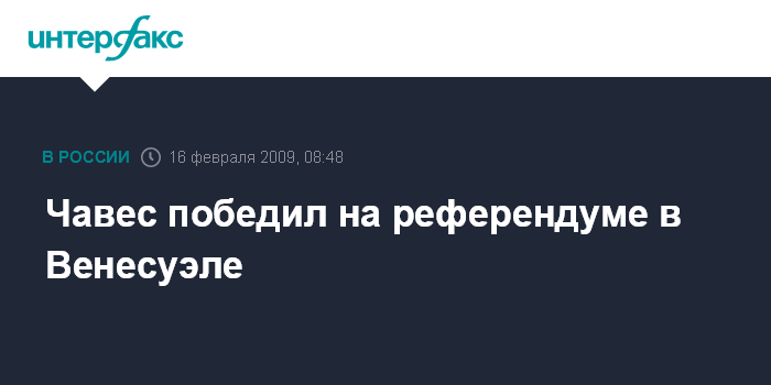 Москва. 16 февраля. INTERFAX.RU - В Венесуэле оглашены результаты голосования на референдуме о переизбрании президента, сообщает в понедельник телерадиовещательная корпорация BBC.