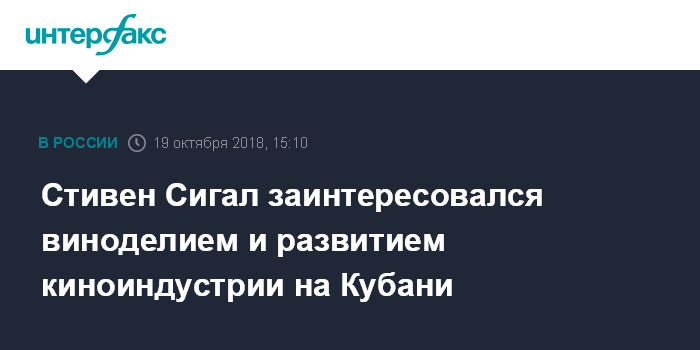 Москва. 19 октября. INTERFAX.RU - Получивший два года назад гражданство РФ американский актер Стивен Сигал заинтересовался предложением губернатора Краснодарского края Вениамина Кондратьева о строительстве винодельческого предприятия на территории региона.