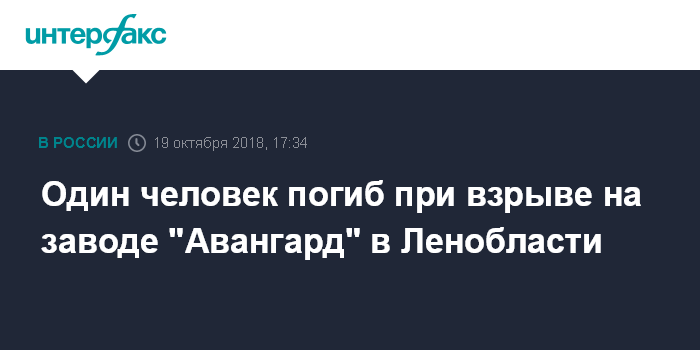 Один человек погиб при взрыве на заводе "Авангард" в Ленобласти
