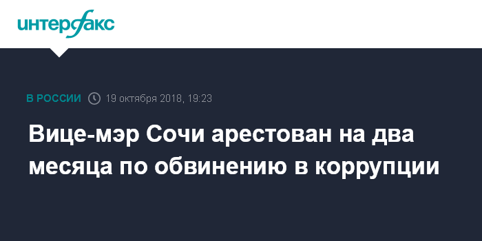 Вице-мэр Сочи арестован на два месяца по обвинению в коррупции