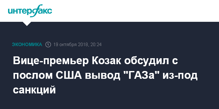 Вице-премьер Козак обсудил с послом США вывод "ГАЗа" из-под санкций