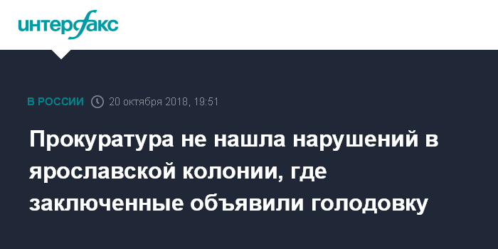 Москва. 20 октября. INTERFAX.RU - Прокуратура не нашла нарушений в ярославской колонии, где пятеро заключенных объявили голодовку из-за отсутствия тепла и медицинской помощи.