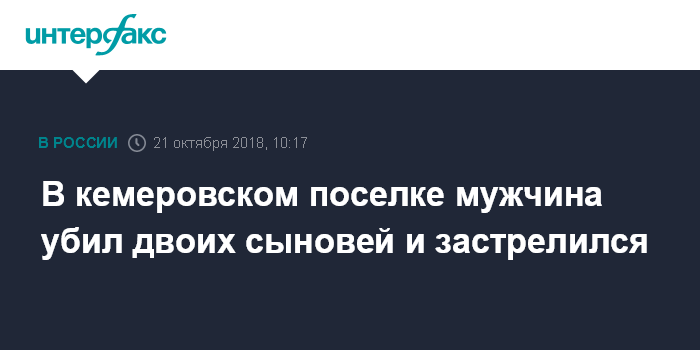 Москва. 21 октября. INTERFAX.RU - Мужчина открыл стрельбу в кемеровском поселке, в результате погибли два его сына, сам он застрелился, сообщили в пресс-службе следственного управления СКР по региону в воскресенье.