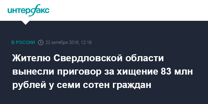 Жителю Свердловской области вынесли приговор за хищение 83 млн рублей у семи сотен граждан