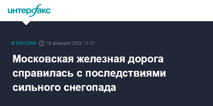 Москва. 16 февраля. INTERFAX.RU - С началом мощного снегопада в столичном регионе для борьбы со стихией была задействована вся специализированная техника московского железнодорожного узла, сообщили "Интерфаксу" в понедельник в службе по связям с общественностью Московской железной дороги (МЖД).