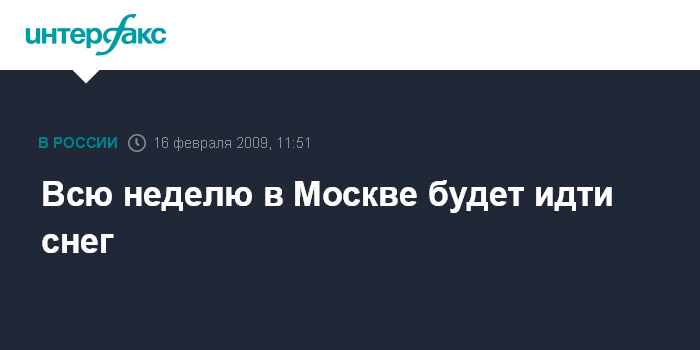 Москва. 16 февраля. INTERFAX.RU - В предстоящие несколько дней в столице периодически будет идти снег, сообщили "Интерфаксу" в понедельник в Гидрометеобюро Москвы и Московской области. Там рассказали, что в Москве днем будет от нуля до плюс двух градусов, временами будет идти мокрый снег с дождем, выпадет до 2-4 мм осадков.