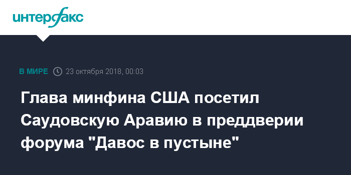 Глава минфина США посетил Саудовскую Аравию в преддверии форума "Давос в пустыне"