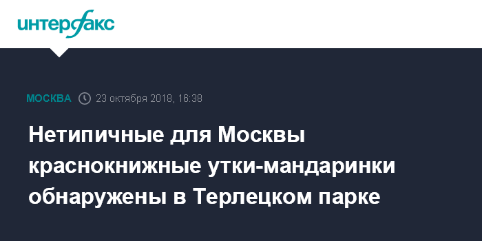 Москва. 23 октября. INTERFAX.RU - В Купальном пруду на территории Терлецкого лесопарка на юго-востоке Москвы сотрудники "Мосприроды" обнаружили редкую для столицы парочку уток-мандаринок.