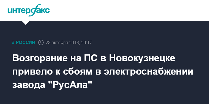 Москва. 23 октября. INTERFAX.RU - Новокузнецкий алюминиевый завод (АО "РусАл Новокузнецкий алюминиевый завод", НкАЗ) и АО "Кузнецкие ферросплавы" во вторник вечером сбрасывали энергонагрузку из-за возгорания на электроподстанции.