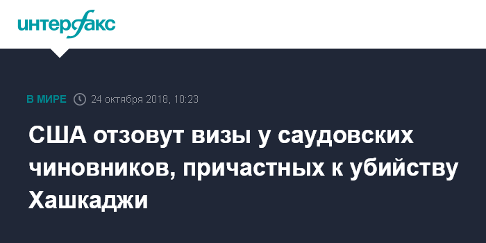 "Мы выявили как минимум несколько ответственных лиц, включая людей из разведки, королевского суда, министерства иностранных дел и других министерств Саудовской Аравии, которые, как мы подозреваем, были вовлечены в инцидент с гибелью Хашкаджи. Мы предпринимаем необходимые действия, которые включают в себя отзыв виз, контроль за въездными визами и другие меры", - сказал Помпео на встрече с журналистами в Госдепе США.