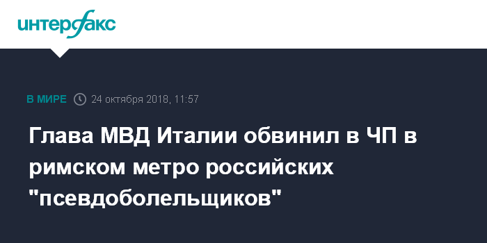 Москва. 24 октября. INTERFAX.RU - Министр внутренних дел Италии Маттео Сальвини в среду заявил, что российские болельщики команды ЦСКА сами начали беспорядки, которые привели к трагическому инциденту в метрополитене Рима.