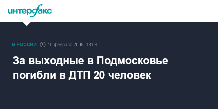 Москва. 16 февраля. INTERFAX.RU - За прошедшие выходные в Московской области произошло 67 дорожно-транспортных происшествий, в которых погибли 20 человек и пострадали еще 50, сообщил "Интерфаксу" в понедельник источник в правоохранительных органах.