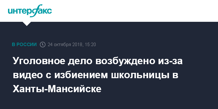 Москва. 24 октября. INTERFAX.RU - В Ханты-Мансийске возбудили уголовное дело в связи с появлением в интернете видео, на котором подростки избивают сверстницу, сообщается на сайте Следственного комитета РФ в среду.