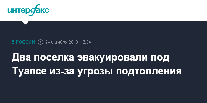 Москва. 24 октября. INTERFAX.RU - Режим ЧС введен в среду днем во всех сельских поселениях Туапсинского района Краснодарского края в связи с сильными осадками и угрозой затопления, сообщил журналистам губернатор региона Вениамин Кондратьев.