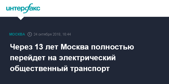 Москва. 24 октября. INTERFAX.RU - Российская столица полностью перейдет на электрические виды наземного общественного транспорта через 12-13 лет, отказавшись от дизельных автобусов, заявил заммэра Москвы по вопросам транспорта Максим Ликсутов.