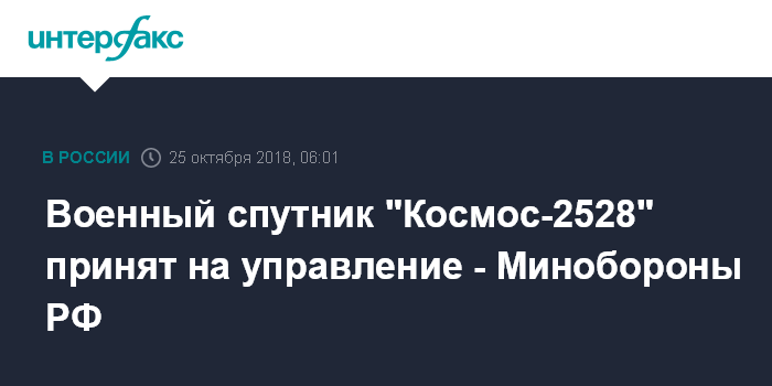 Военный спутник "Космос-2528" принят на управление - Минобороны РФ