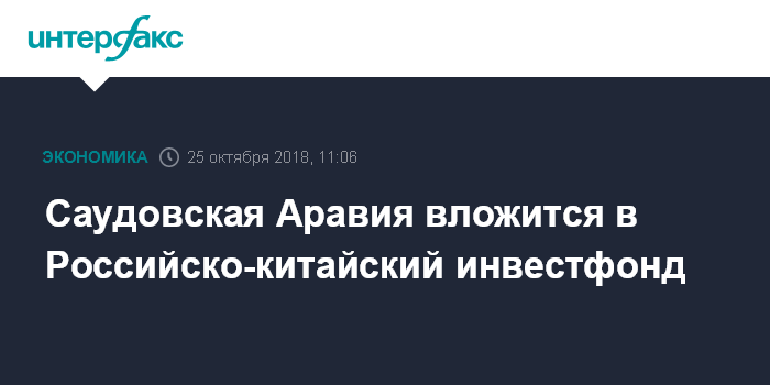 Москва. 25 октября. INTERFAX.RU - Саудовская Аравия инвестирует в Российско-китайский инвестиционный фонд, созданный РФПИ и China Investment Corporation.