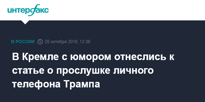 Москва. 25 октября. INTERFAX.RU - В Кремле с юмором отнеслись к публикации газеты The New York Times о том, что российские спецслужбы якобы прослушивают личный телефон президента США Дональда Трампа.
