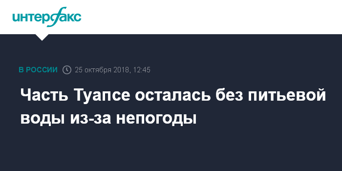 Москва. 25 октября. INTERFAX.RU - Подача питьевой воды прекращена в двух жилых микрорайонах Туапсе из-за вызванной паводком аварии на магистральном водопроводе, сообщили "Интерфаксу" в пресс-службе администрации Краснодарского края.