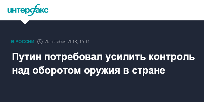 Путин потребовал усилить контроль над оборотом оружия в стране