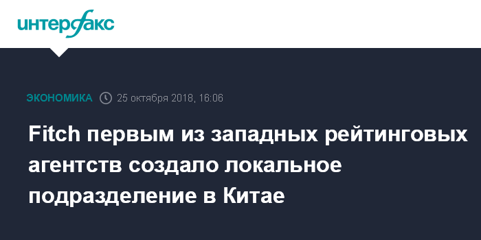 Fitch первым из западных рейтинговых агентств создало локальное подразделение в Китае