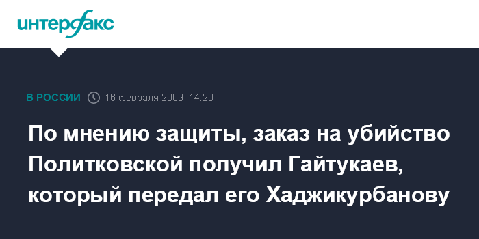 По мнению защиты, заказ на убийство Политковской получил Гайтукаев, который передал его Хаджикурбанову