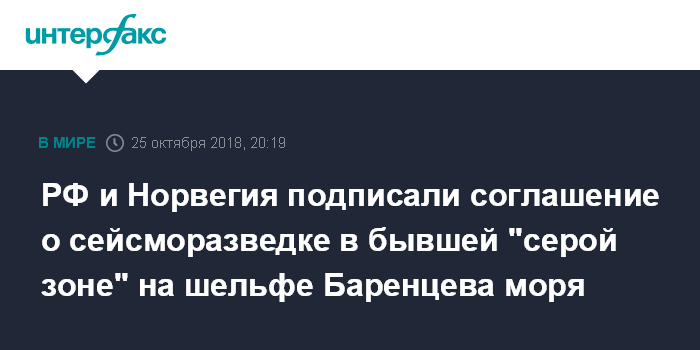 РФ и Норвегия подписали соглашение о сейсморазведке в бывшей "серой зоне" на шельфе Баренцева моря