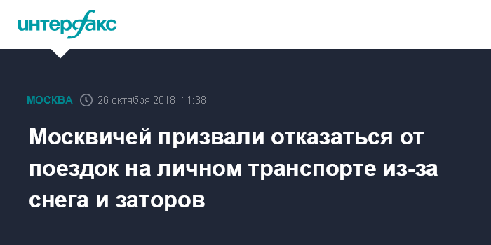 Москвичей призвали отказаться от поездок на личном транспорте из-за снега и заторов